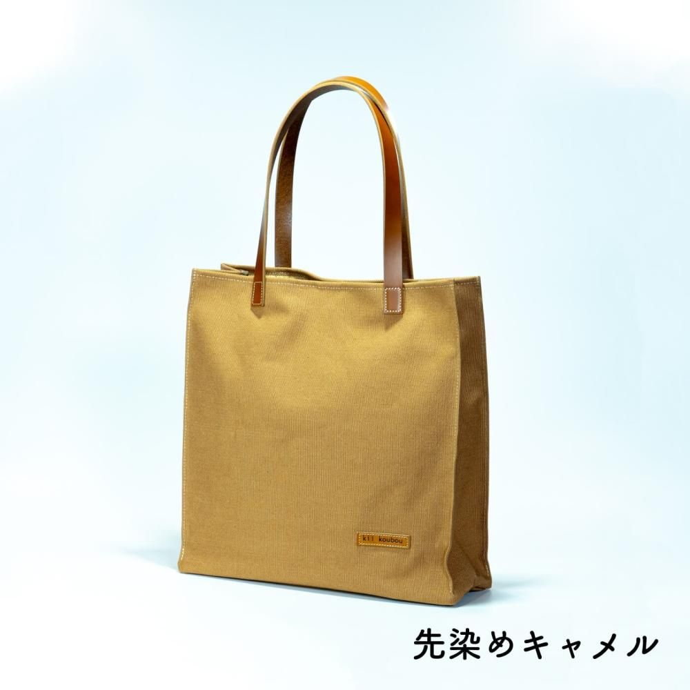 厚手の4号帆布を使用したスクエアー肩掛け大トートです。