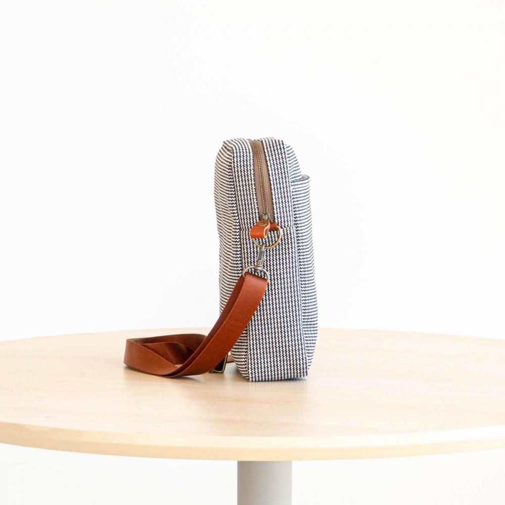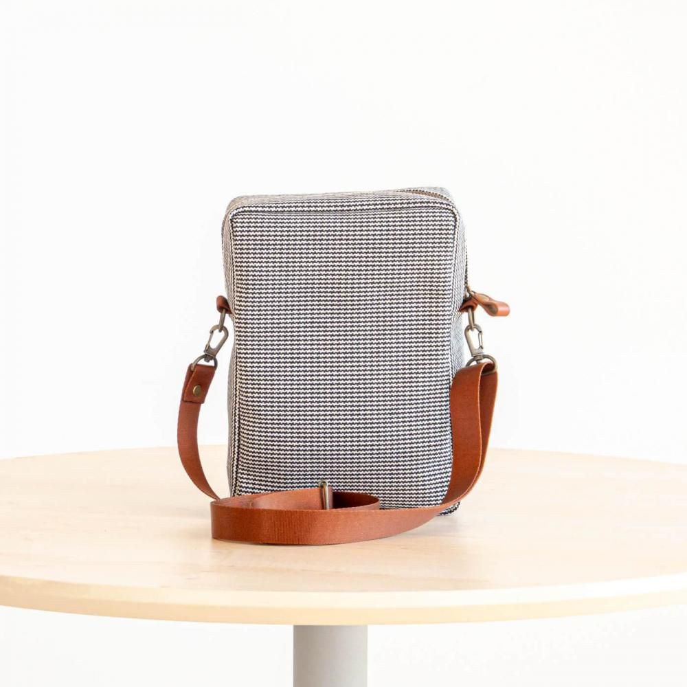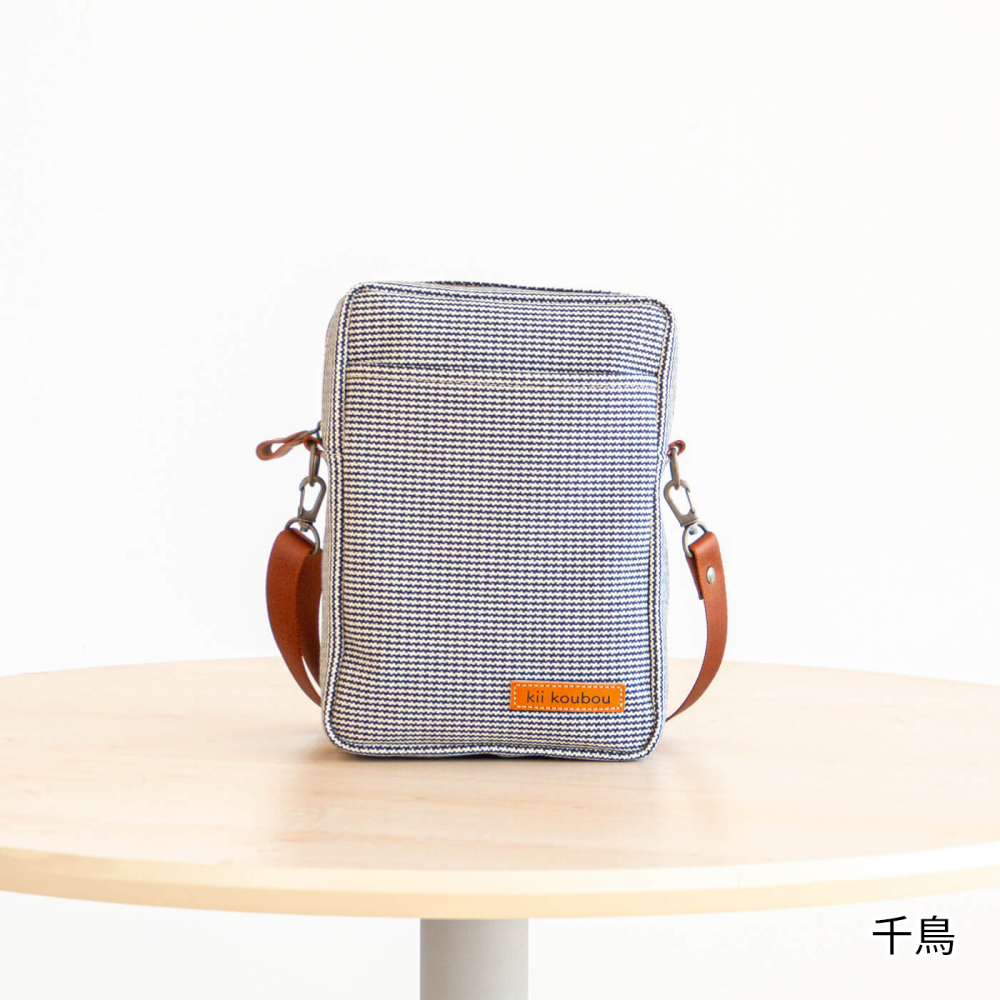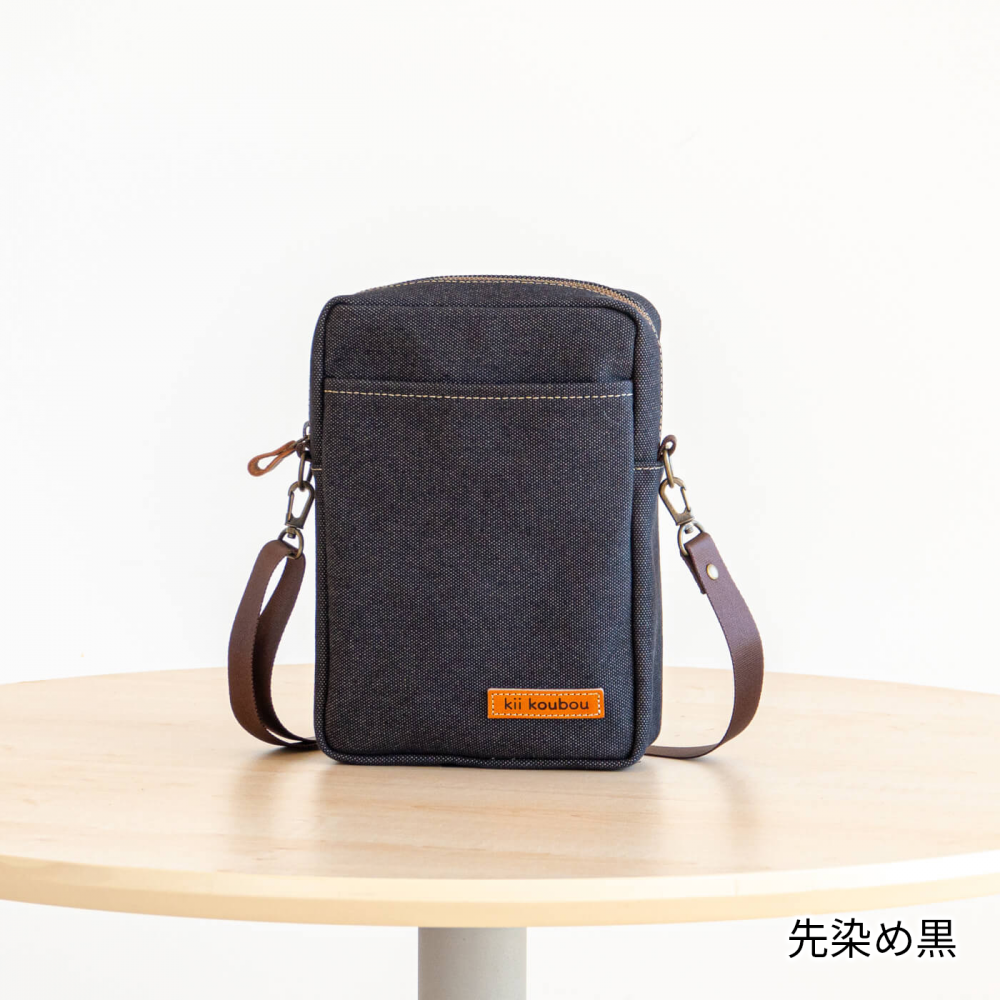 地元高島で織られた厚手の4号帆布を使用したボックスショルダー縦 Mです。丈夫さと耐久性に優れています。